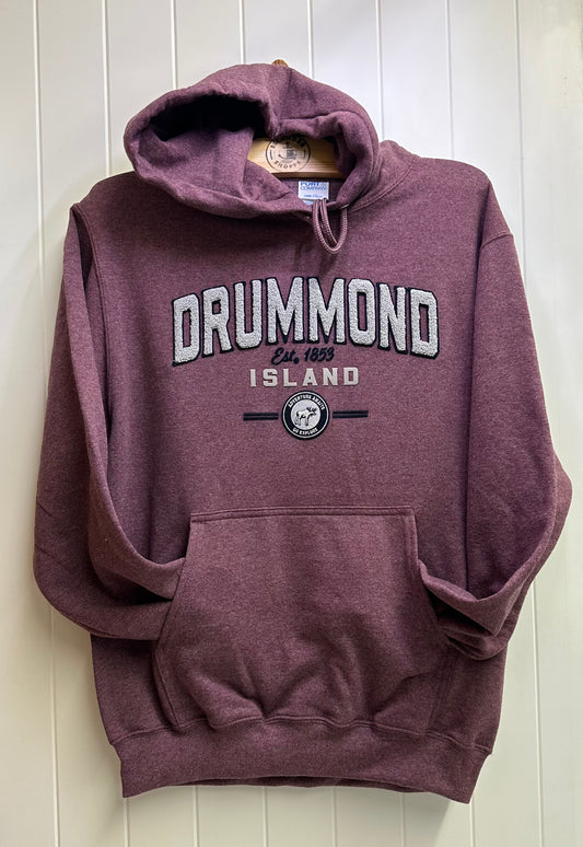 Drummond Island Fuzzy Embossed Letters and Moose, Hoodie