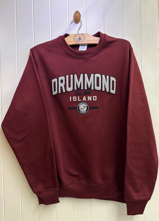 Drummond Island Fuzzy Embossed Letters and Moose, Crew